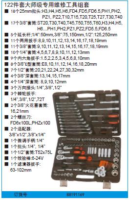 ·11个两用扳手:8,9,10,11,12,13,14,16,17,18,19mm