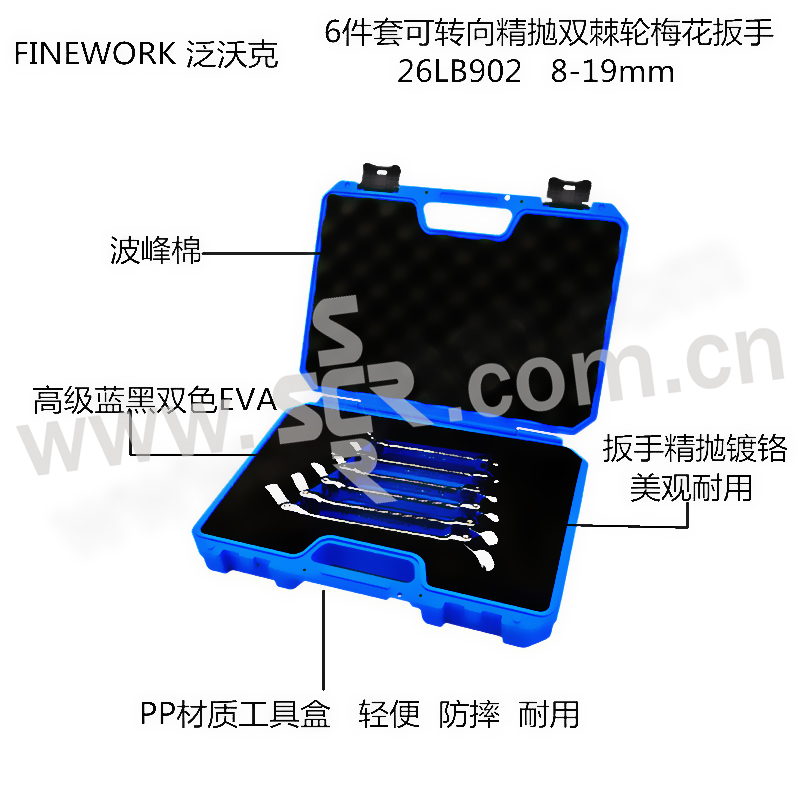 FINEWORK/泛沃克 6件套可转向精抛双棘轮梅花扳手 26LB902 1套