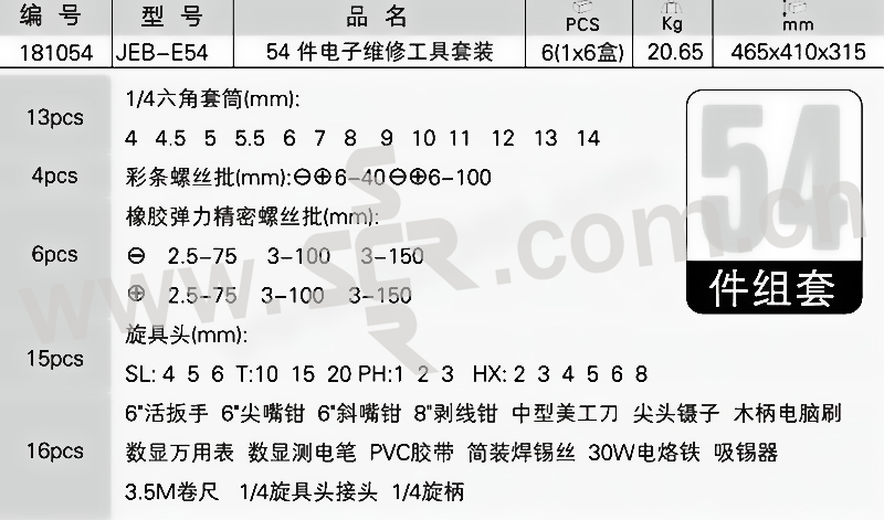 JETECH/捷科 电子维修工具套装(54件) JEB-E54 1套