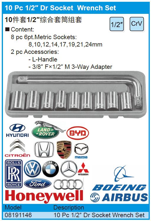 08191146 KT8-191-146 10件 套装 公制插座 L形手柄 三通适配器等 497.64