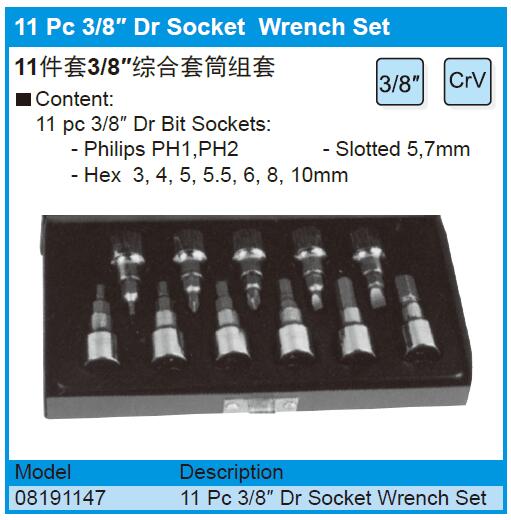 英文名称:  11 Pc 3/8″ Dr Socket Wrench Set