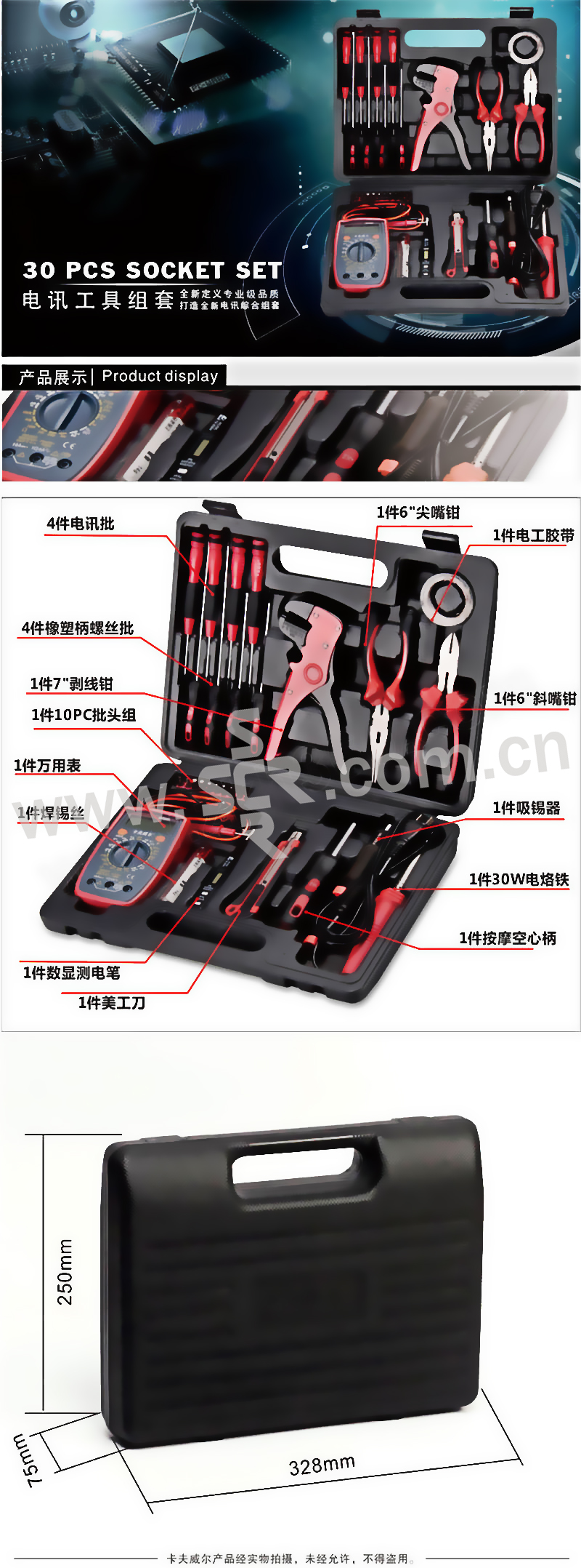 OK-TOOLS/卡夫威尔 30件电讯工具组套 C9001A 30件套 1套