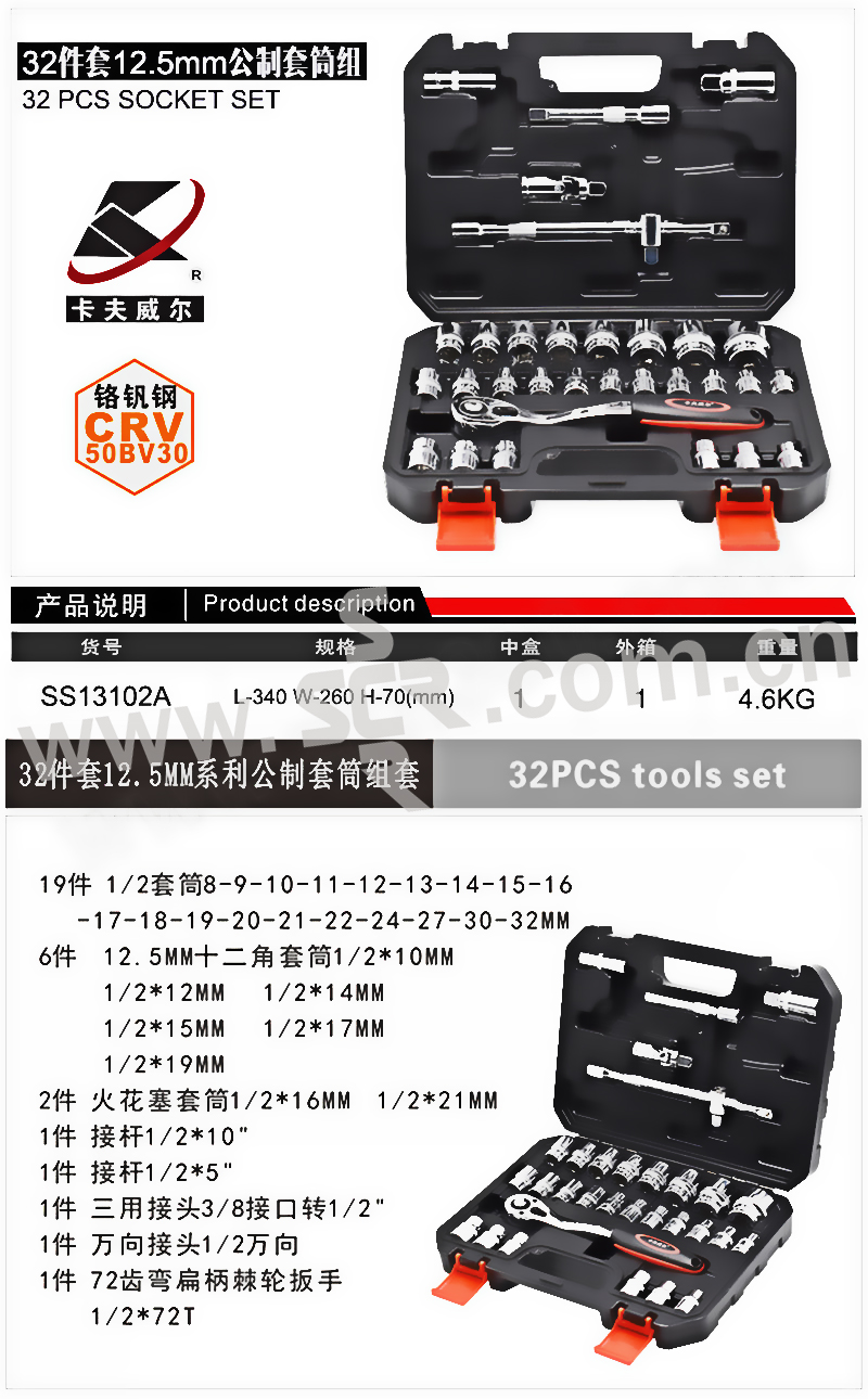 OK-TOOLS/卡夫威尔 大飞系列32件套12.5mm公制套筒组套 SS13032A 1套