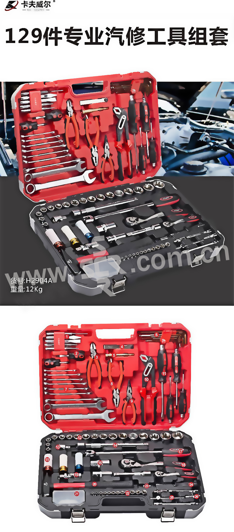 OK-TOOLS/卡夫威尔 汽修棘轮套筒扳手组套 H2904A 129件套 1套