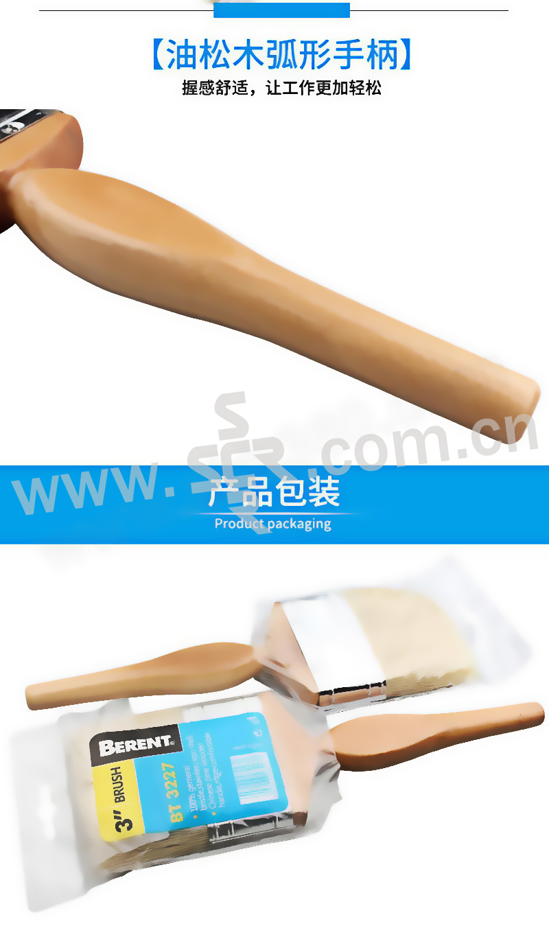 ·100%普通全猪鬃,铁壳为不锈铁·油松木手柄,握感更舒适。