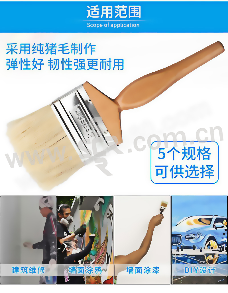 ·100%普通全猪鬃,铁壳为不锈铁·油松木手柄,握感更舒适。
