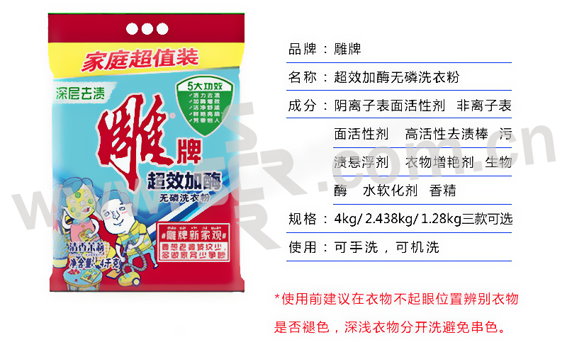 DIAOPAI/雕牌 超效无磷加酶洗衣粉 6910019008819 4kg 1包