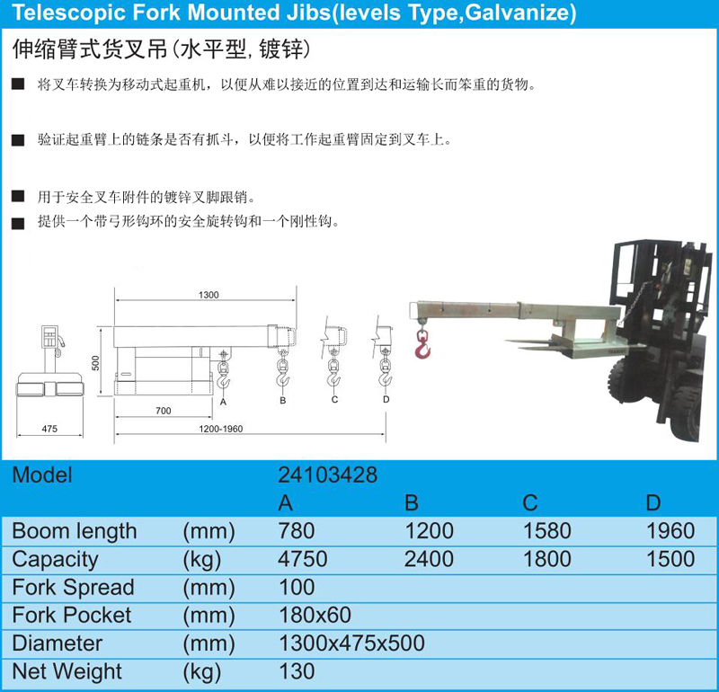 Telescopic Fork Mounted Jibs(levels Type,Galvanize)