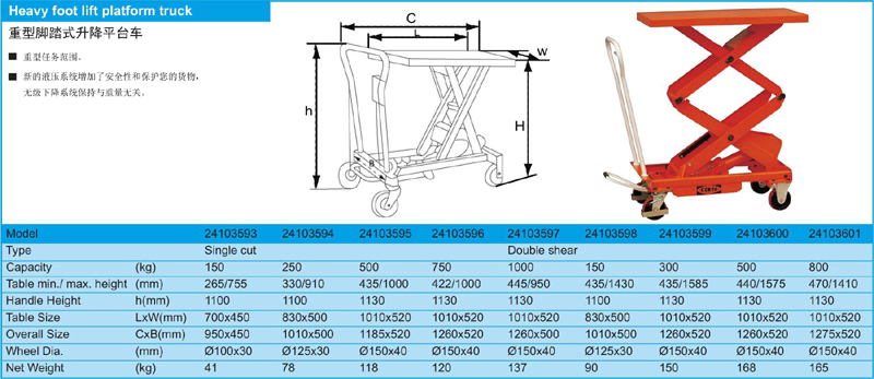 Heavy foot lift platform truck