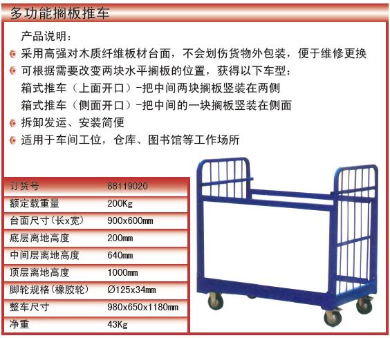 A22163 88119020 推车 200kg 900×600mm 200mm 640mm 1000mm Ø125×34mm 980×650×1180mm 43Kg 4879.50