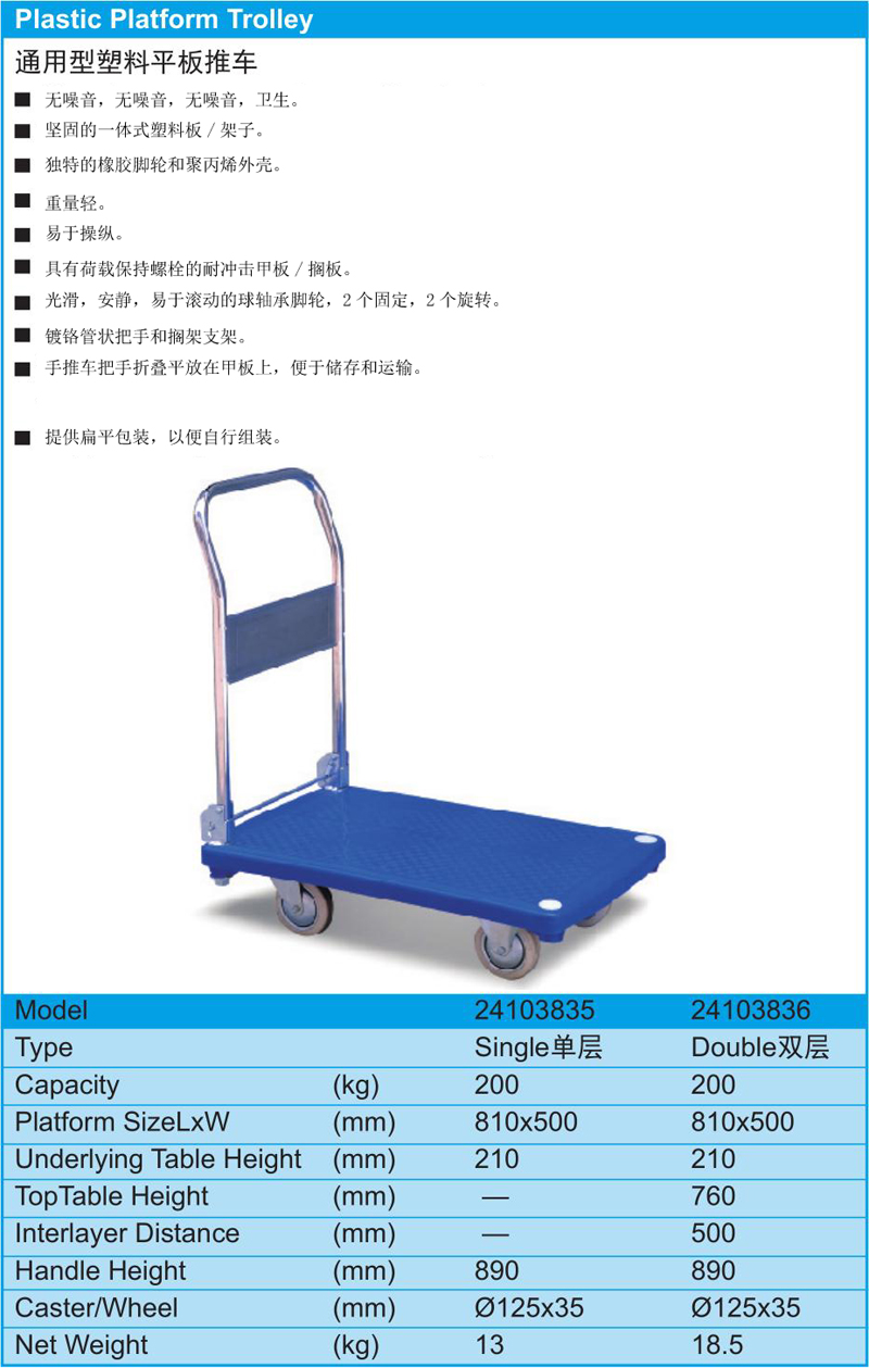 塑料静音手推车