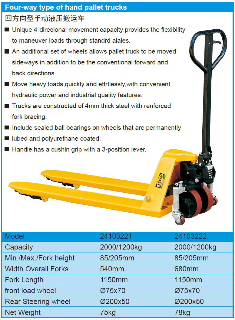 当前位置:首页 > 搬运存储 > 搬运堆高设备 > 托盘搬运车 > 四方向手动液压搬运车