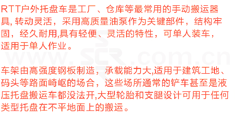 ﹒牢固耐用: 采用高强度钢板制造,更加坚固耐用。 ﹒使用多样: 可调节货叉尺寸可满足不同尺寸的托盘。