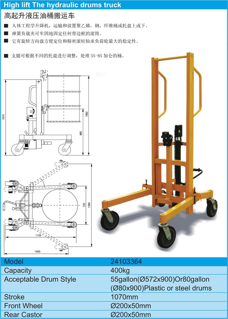 24103364 KT24-103-364 高起升液压式 400kg 55/80gal 12950.00