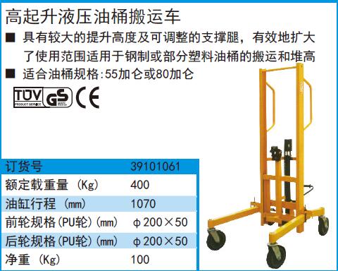 ·具有较大的提升高度及可调整的支撑腿,有效地扩大了使用范围适用于钢制或部分塑料油桶的搬运和堆高