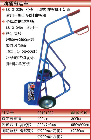 ·适用于搬运直径Ø500-Ø590mm的塑料及钢桶(容积为120-220L)巧妙的结构设计,操作简单方便 )