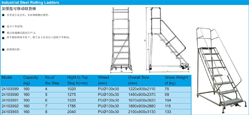英文名称:  Industrial Steel Rolling Ladders