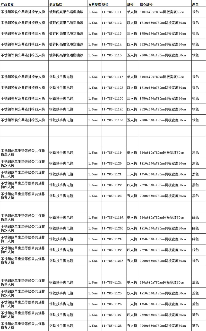 ·钢铁扶手脚电镀,等候公共连排椅 ·VETTER/威特 不锈钢皮革坐垫等候公共连排椅三人椅 11-785-1121 尺寸1750×670×780mm 网板宽度50cm 1组