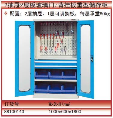 2抽屉2层板玻璃门/背挂板重型储存柜