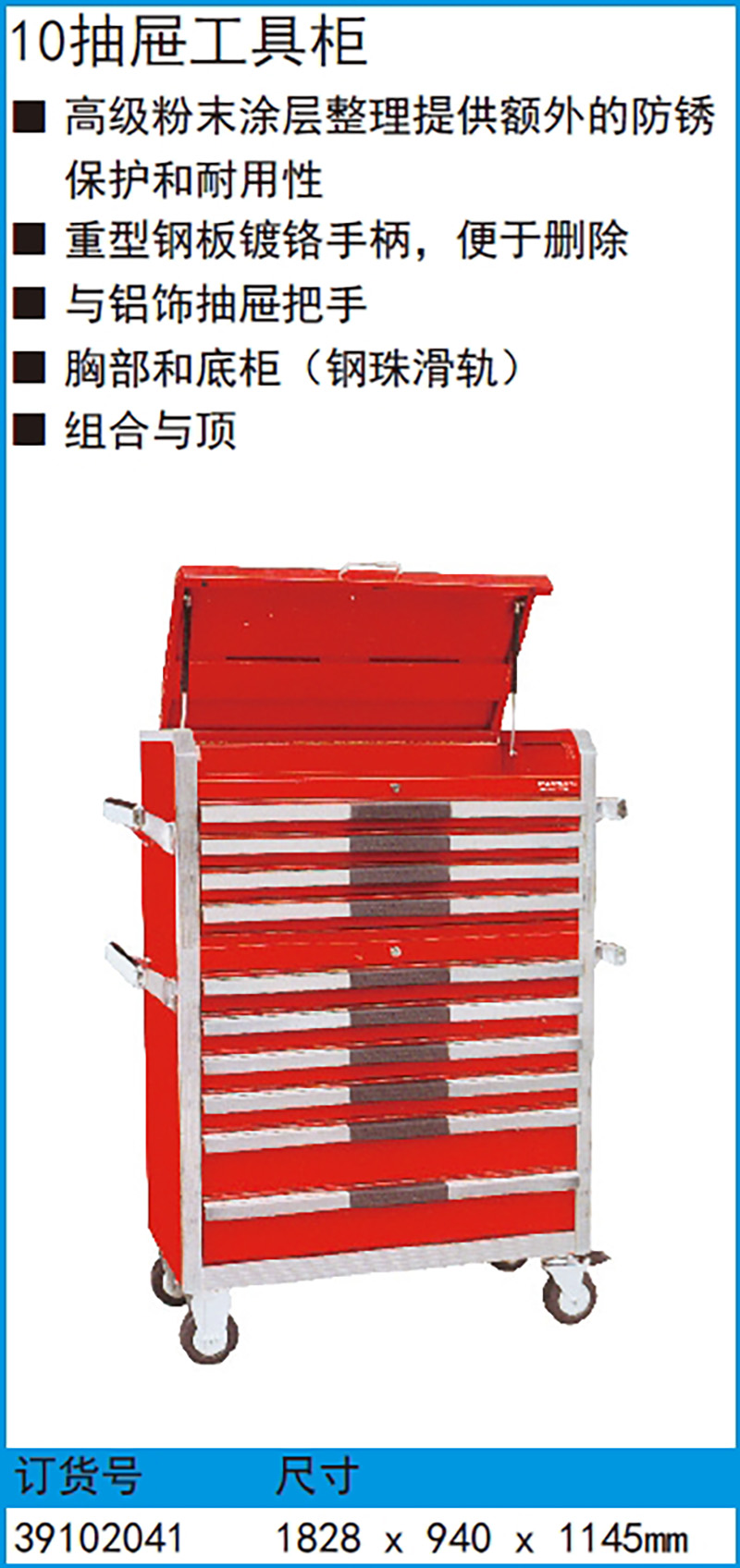 ·高级粉末涂层整理提供额外的防锈保护和耐用性 ·重型钢板镀铬手柄,便于删除 ·与铝饰抽屉把手 ·胸部和底柜(钢珠滑轨) ·组合与顶