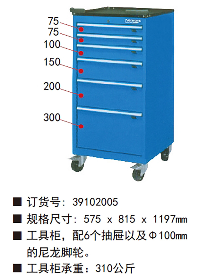 ·配6个抽屉以及Φ100mm的尼龙脚轮。