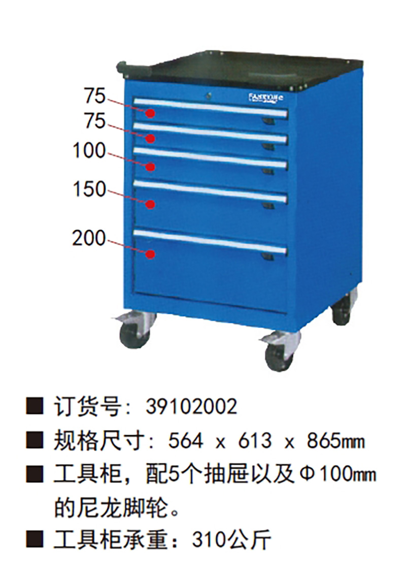 配5个抽屉以及Φ100mm的尼龙脚轮。