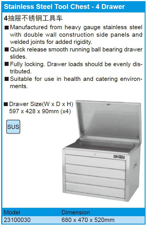 Stainless Steel Tool Chest - 4 Drawer