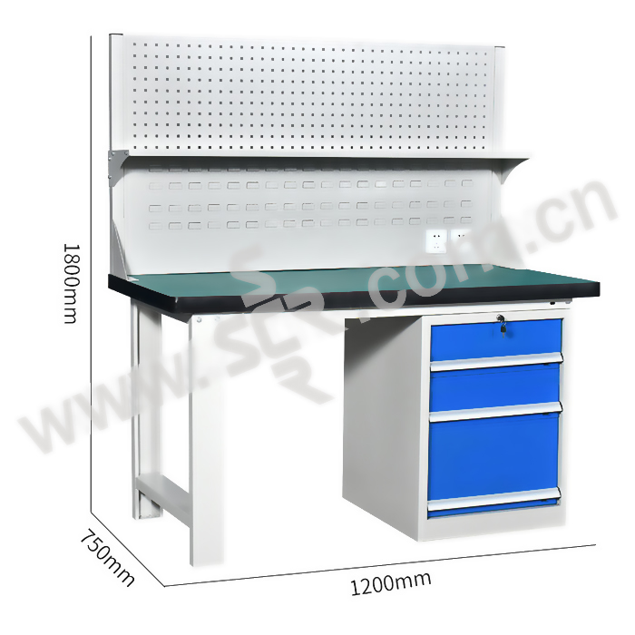 SHENGYUEXINMEI/盛悦欣美 三抽加挂板1.2m工作台 1200×750×1800mm 台面承重1t 方孔挂板 灰色 1个