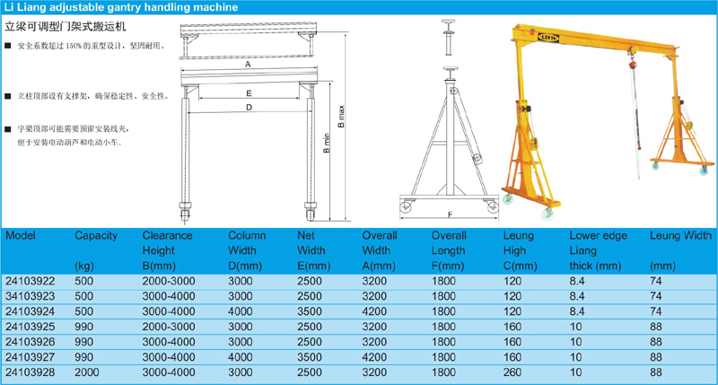 Li Liang adjustable gantry handling machine