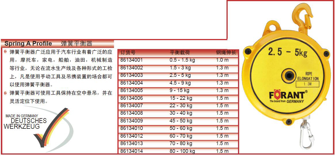 ·弹簧平衡器可使用工具保持在空中悬吊,并在灵活定位下使用。