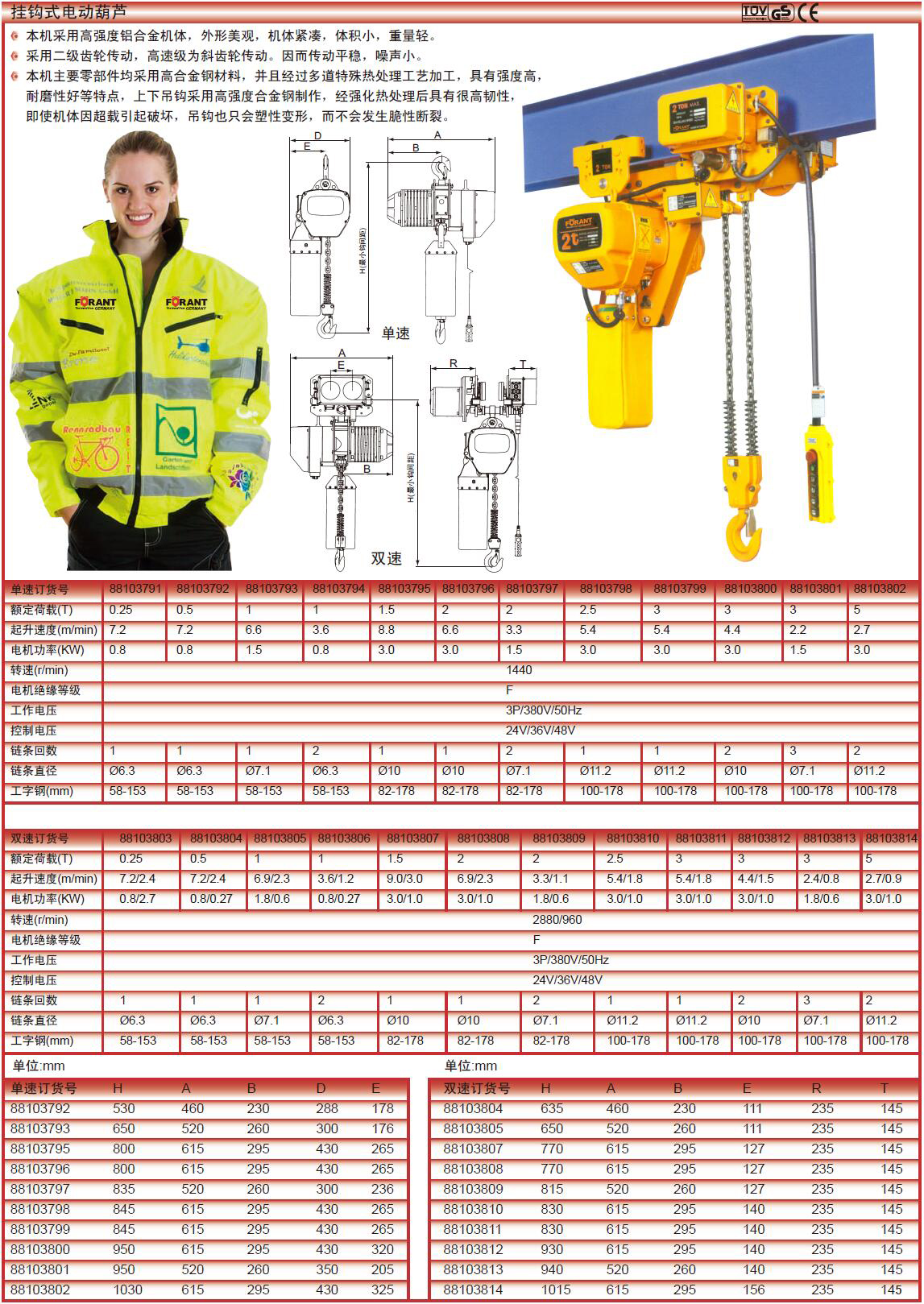 订货号 制造商型号 额定载重 起升高度 链条数 电压 起升速度 电机功率 转速 电机绝缘等级 工作电压 链条直径 工具钢 H A B D E 价格 购物车