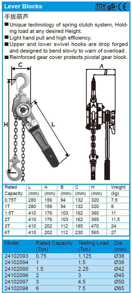 订货号 制造商型号 额定载重 起升高度 链条数 价格 购物车