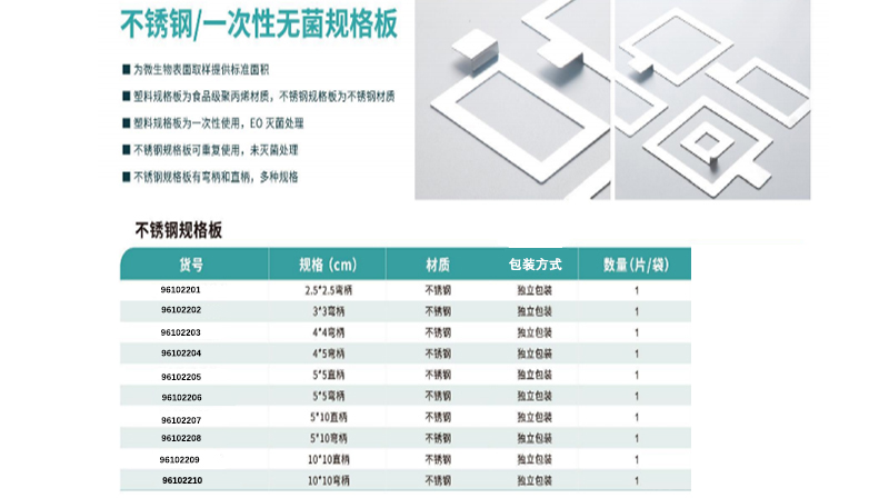 ·塑料规格板为食品级聚丙烯材质,不锈钢规格板为不锈钢材质