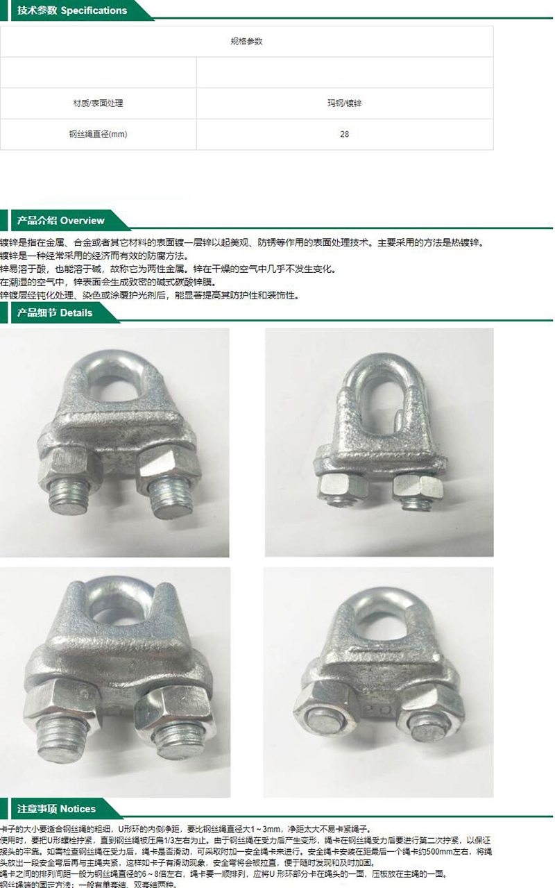 GD2013 GE70-400-2464 卡扣 钢丝绳直径 28mm 钢丝绳配件 67.51