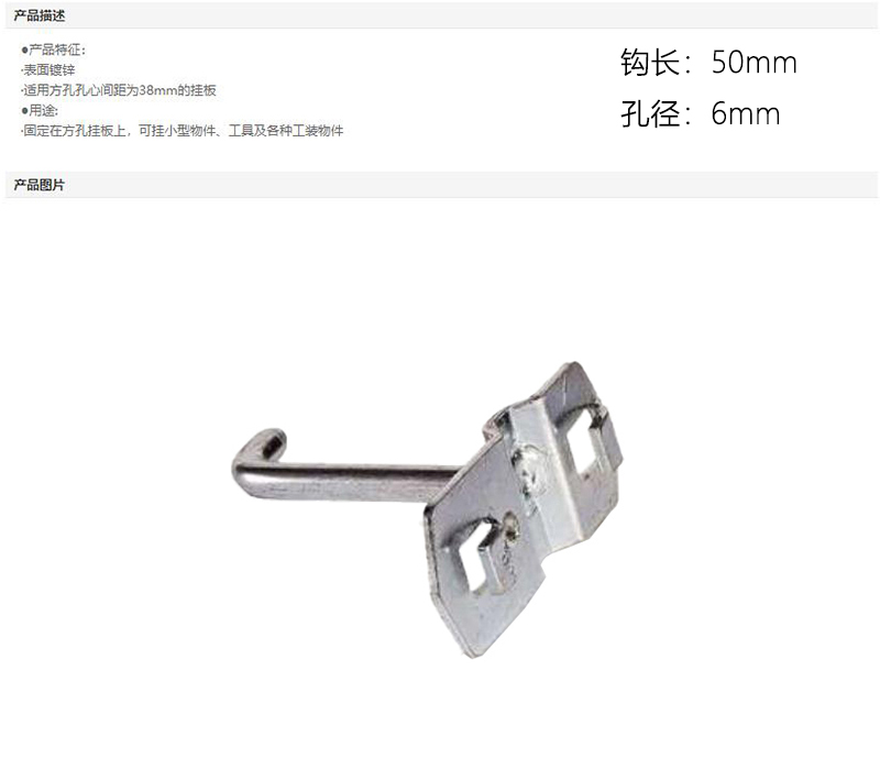 ·表面镀锌 ·适用方孔孔心间距为38mm的挂板