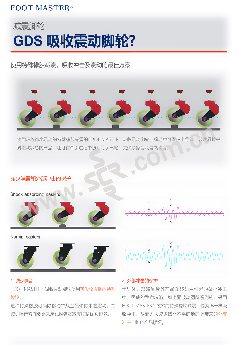 FOOT MASTER/福特马特 GDS系列万向带刹车型减震脚轮 GDS-100-BSF-LUD 载重100kg 底板73×73mm 1个