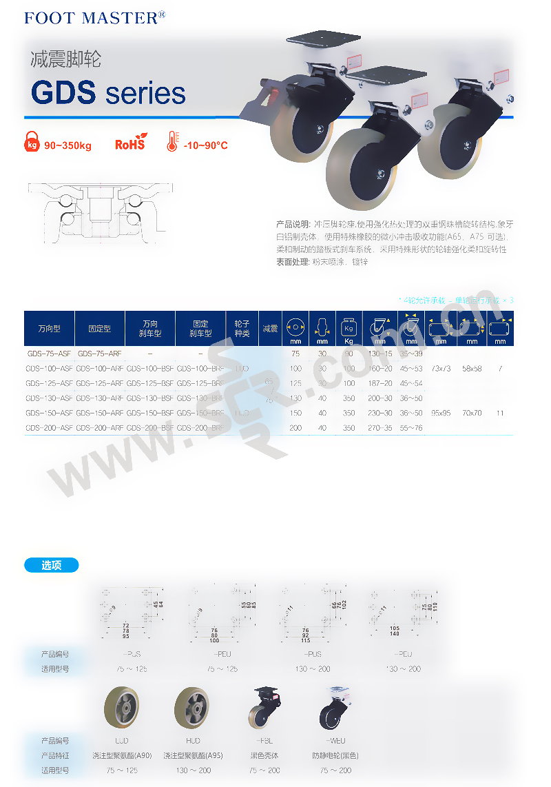 FOOT MASTER/福特马特 GDS系列定向型减震脚轮 GDS-130-ARF-HUD 载重350kg 底板95×95mm 1个