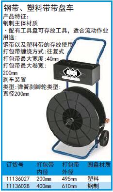 ·钢制主体材质配有工具盘可存放工具,适合流动作业 ·钢带以及塑料带的存放使用