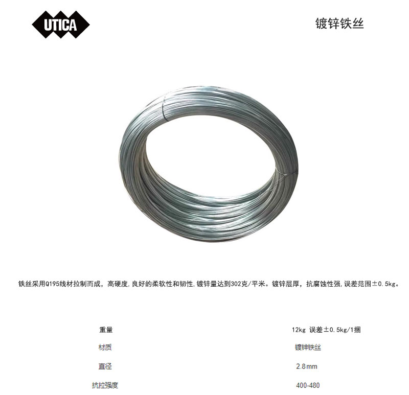 ·铁丝采用Q195线材拉制而成,高硬度,良好的柔软性和韧性,镀锌量达到302克/平米,镀锌层厚,抗腐蚀性强,误差范围±0.5kg