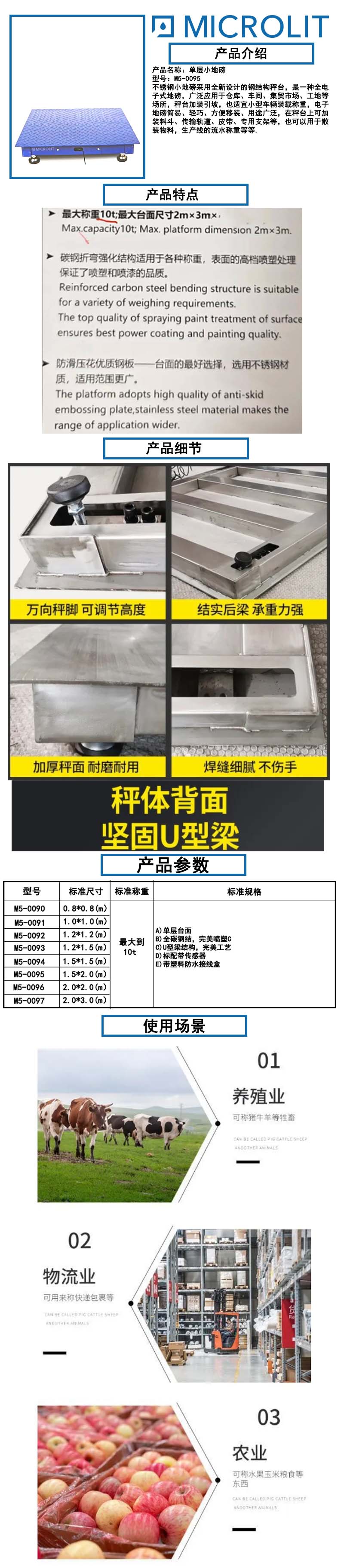 A)单层台面 B)全碳钢结,完美喷塑 C)U型梁结构,完美工艺 D)标配带传感器 F)带塑料防水接线盒