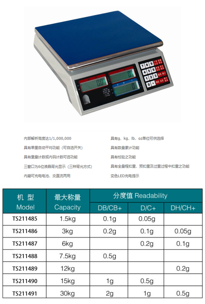 ·高精度单支点铝传感器 ·可拆卸式不锈钢台面 ·ABS塑料外壳 ·标配水平泡和底角