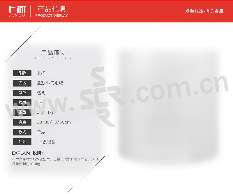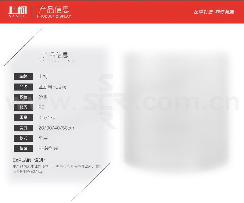 SHANGKE/上柯 气泡膜 A1124 长30m 气泡直径10mm 宽200mm 净重0.5kg 1卷