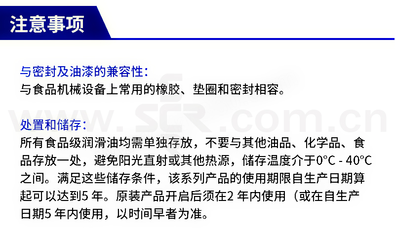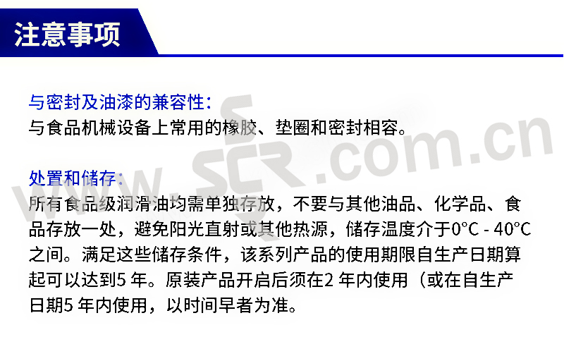 ·认证:符合NSFH1认证、ISO21469卫生管理体系认证、Halal伊斯兰教食品法规、Kosher犹太教食品法规。·性能卓越:卓越的粘附性能和蒸发损失,减少油脂消耗,并具有优异的使用寿命。·成分安全:无不良气味和口味,不含从动物或转基因生物提取的物质。
