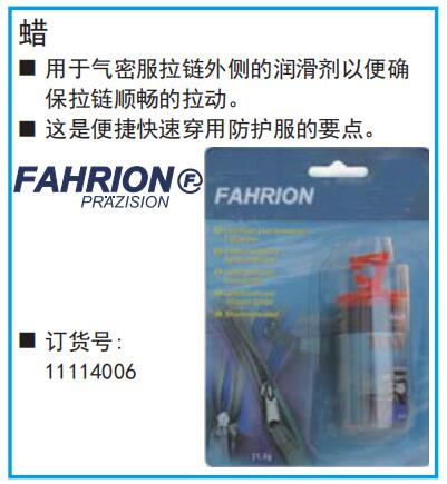 ·用于气密服拉链外侧的润滑剂以便确保拉链顺畅的拉动。 ·这是便捷快速穿用防护服的要点。