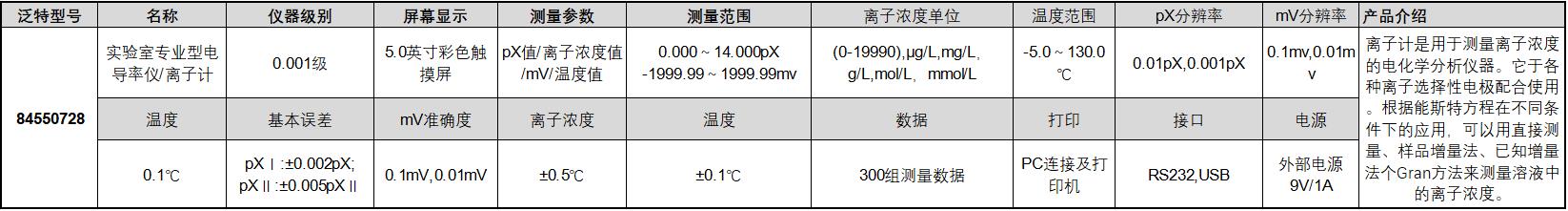 订货号 制造商型号 型号 仪器级别 屏幕显示 测量参数 测量范围 离子浓度单位 温度范围 p×分辨率 mV分辨率 温度 基本误差 mV准确度 离子浓度 温度 数据 打印 接口 电源 价格 购物车