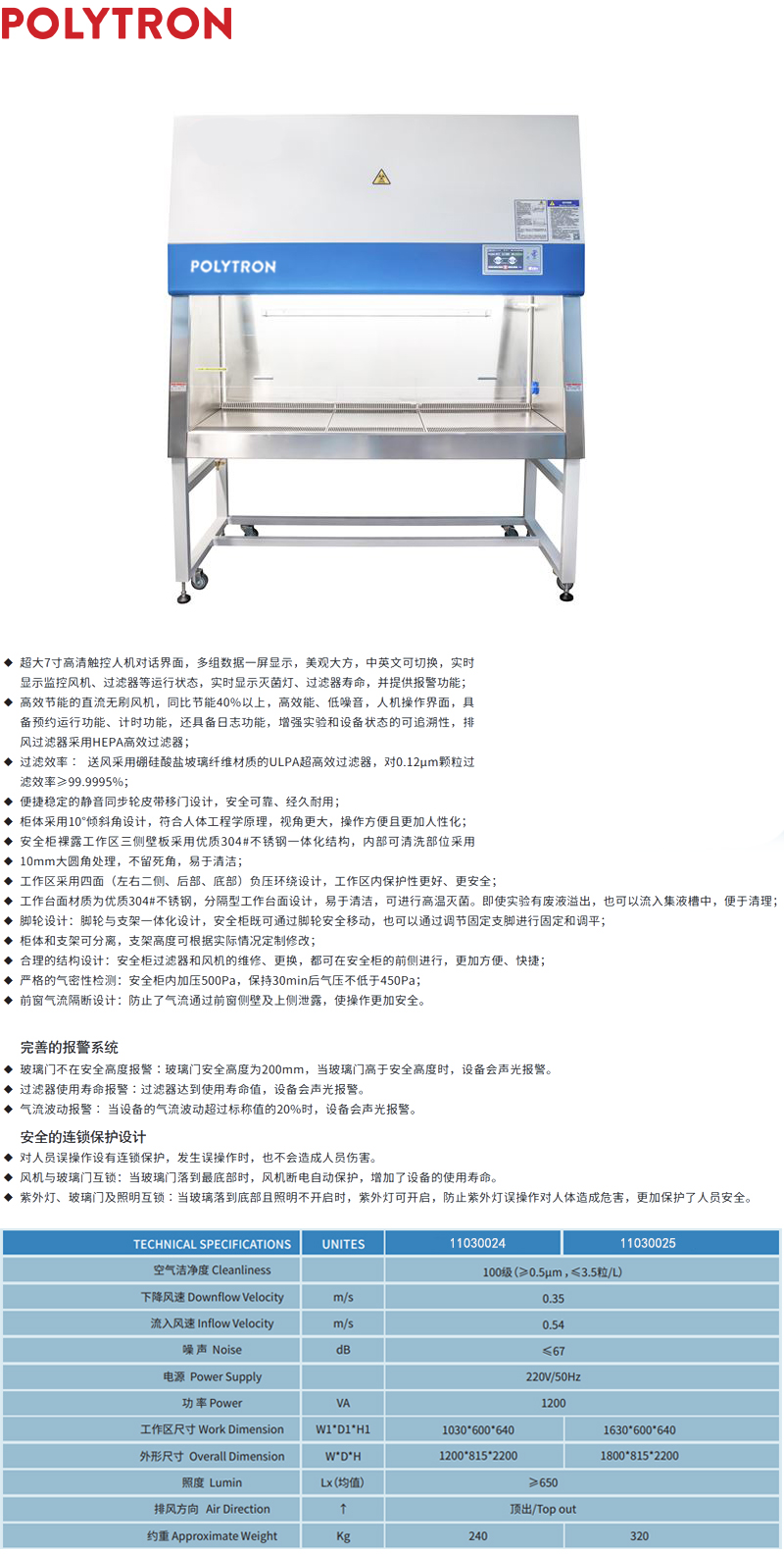 LX10613 11030024 100级(≥0.5μm ,≤3.5粒/L) 0.35m/s 0.54m/s ≤67dB 220V/50Hz 1200VA 1030×600×640mm 1200×815×2200mm ≥650Lx 76800.00