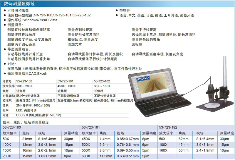 ·使用数码显微镜:53-723-180,53-723-181,53-723-182