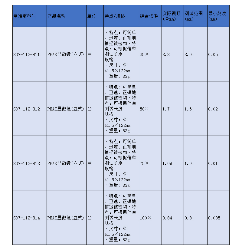 SLAMED PEAK显微镜(立式) 综合倍率75X 最小刻度0.01mm SD7-112-813