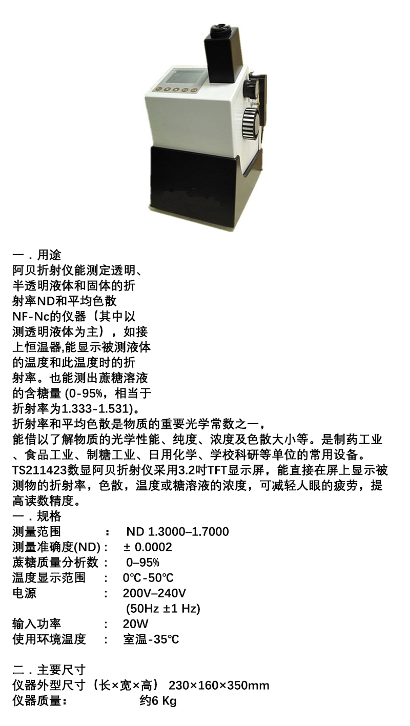 规格:  测量范围Nd1.3000~1.7000 制造商型号:  TS211423