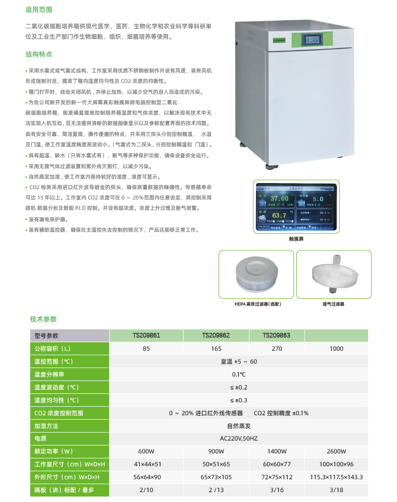 触摸屏控制二氧化碳细胞培养箱